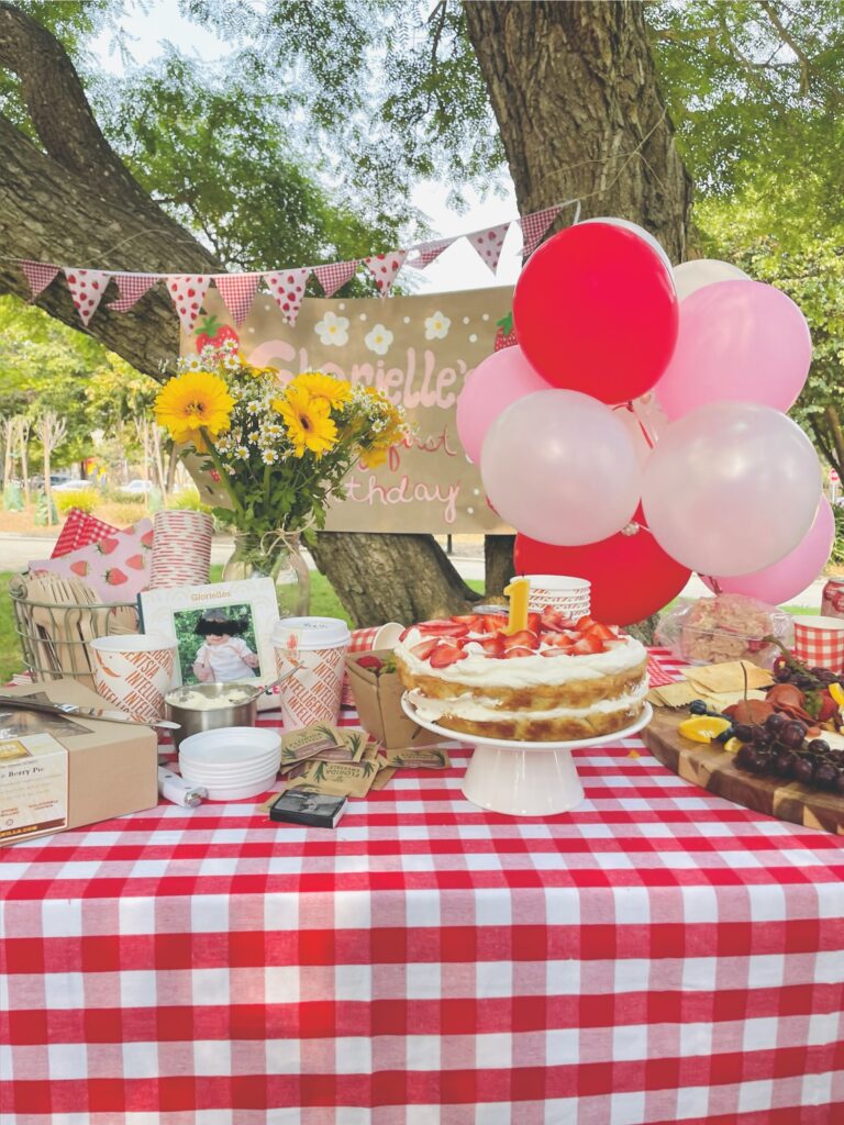 Since my daughter was born in August, we held her birthday in the end of strawberry season. I started planning this in late June. Don’t wait too long to start planning beccuase you will need to invite guests with adequate time.